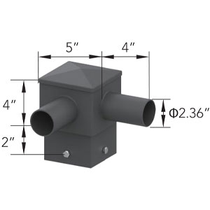 Accesorio de poste de espiga horizontal cuadrado de 5”